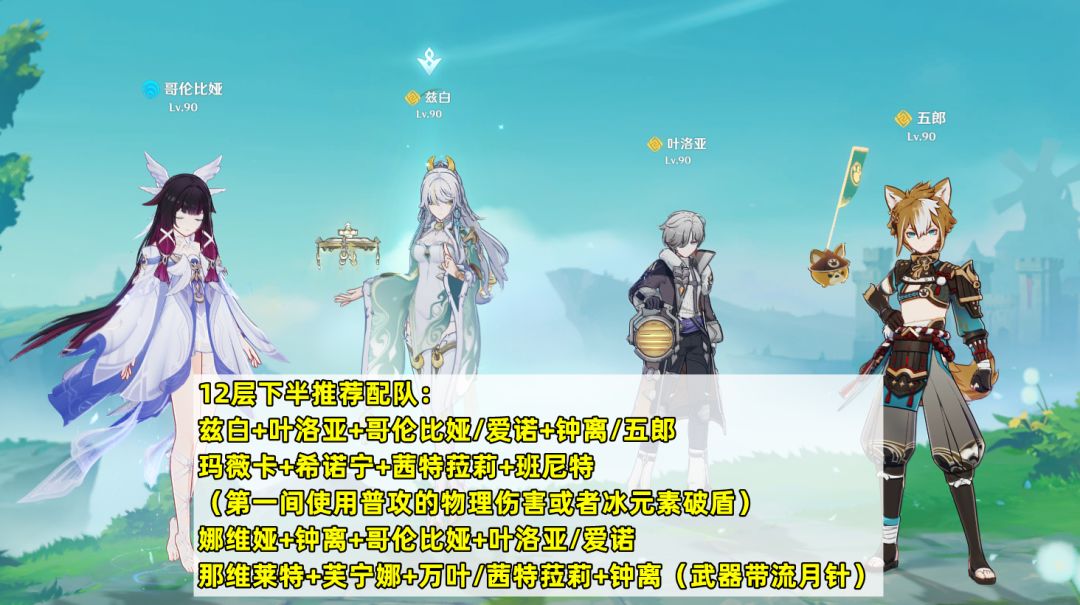 综合来看,上下半都是以月反应配队为优先,如果出现两队都需要哥伦比娅的情况,其中一队换成带爱诺即可解决。以上就是本期深境螺旋的攻略,希望能帮助到大家~