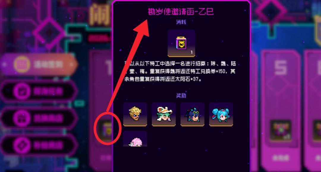 可以从以下特工中选择一名进行招募:琳、魏、陆、萤、梅。重复获得魏将返还特工兑换券*150,其余角色重复获得将返还太阳石*37。