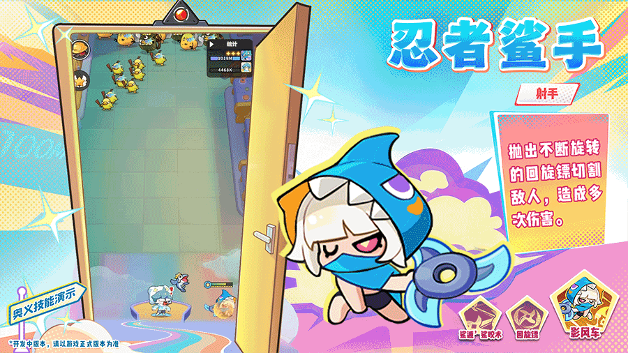 无限穿透的回旋手里剑直接挥出,还附带着自带追踪的巨大回旋镖。当手里剑命中敌人便会打上鲨饵标记,3层后就会受到鲨鱼的啃食。