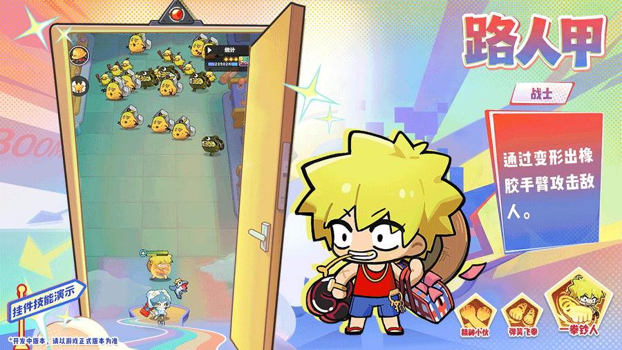 路人甲的战斗之道,也带着打工人的韧劲:他的生命值越低,拳头伤害越高!充能完成后,若遇残血绝境,有概率获得临时护盾,随后轰出巨拳反杀怪物!他甚至还深藏一手聚怪本领,能将目标与其周围多名敌人拉拢到一起,为队友创造输出时机!
