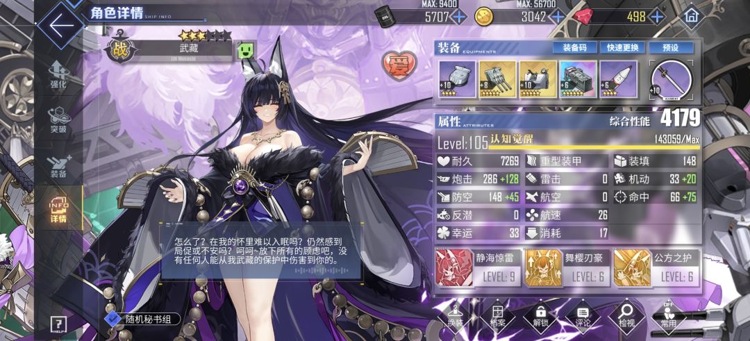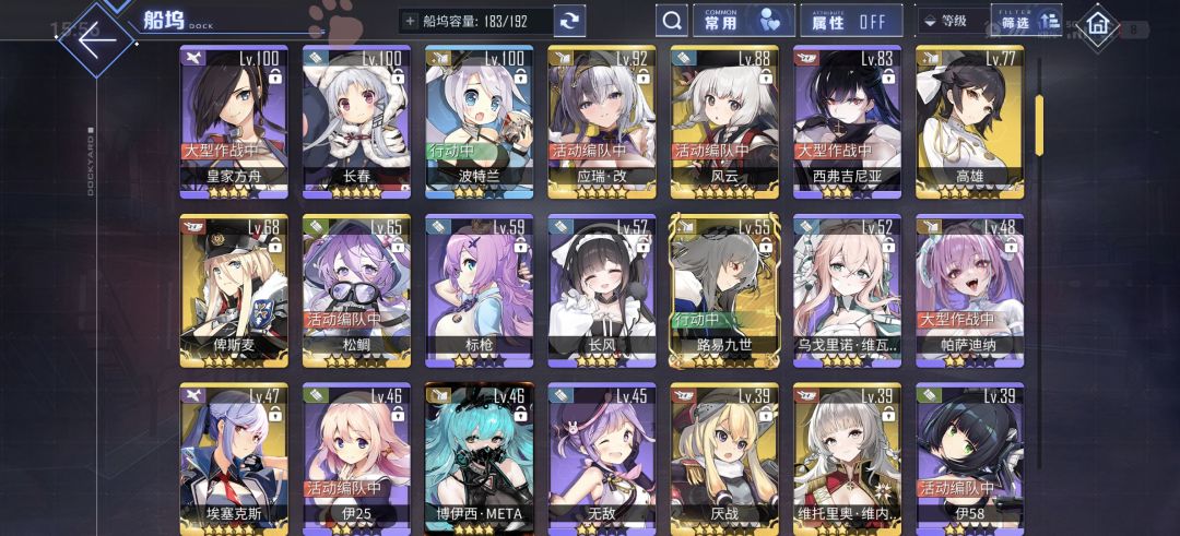 *主线已经打到13章了,装备目前是大部分紫113+10,针对拉菲二关岛二防空高一类的角色带的金圆盘,给武藏带的博福斯,但感觉防空完全不够看,道中一开始还好只漏个四五架飞机,一空弹对面飞机就猛猛触底给武藏撞成吊带,BOSS队打完三个前排全大残,保不齐没有翻车的可能性,所以暂且住在12-4了。