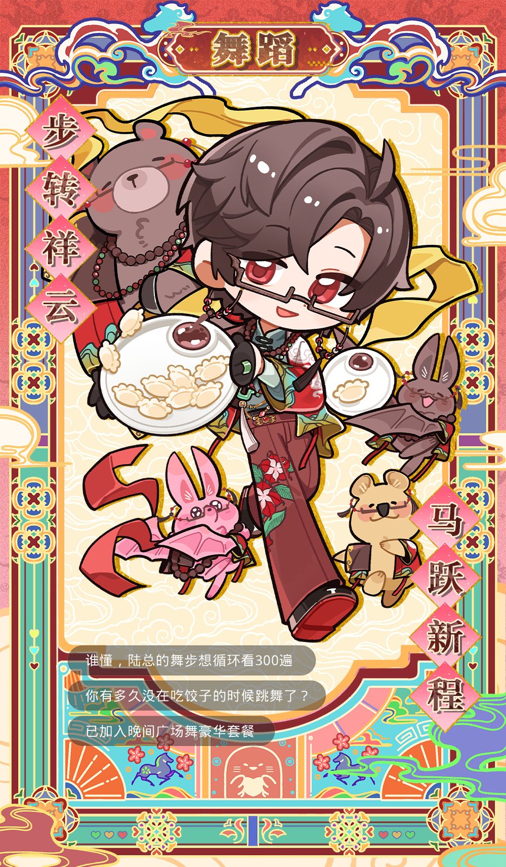 2月16日 05:00 – 2月24日 04:59 期间登录游戏,可在邮箱领取新春福利邮件,包含留声机音乐[好运来](可前往留声机专辑[喧彩迎祥]中解锁)、限定家具[祥马迎春]、限定菜品[团圆福饺][八宝汤圆][玲珑圆子]、纳禧礼盒×3、心之蜜糖×200。