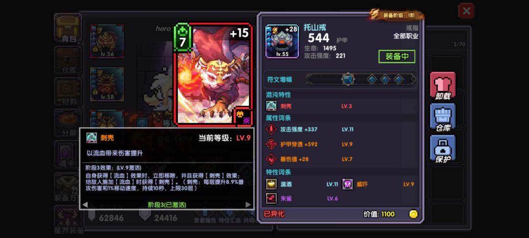 去掉了凛冽,弹刃,蕴灵,甲胃抛光,白虎。加了朱雀,青龙,风云,天地,奇门。换了件装备不过裸面板的火抗从2205降到了2000+,爆伤降了30,护穿升了100+,温酒多了20+