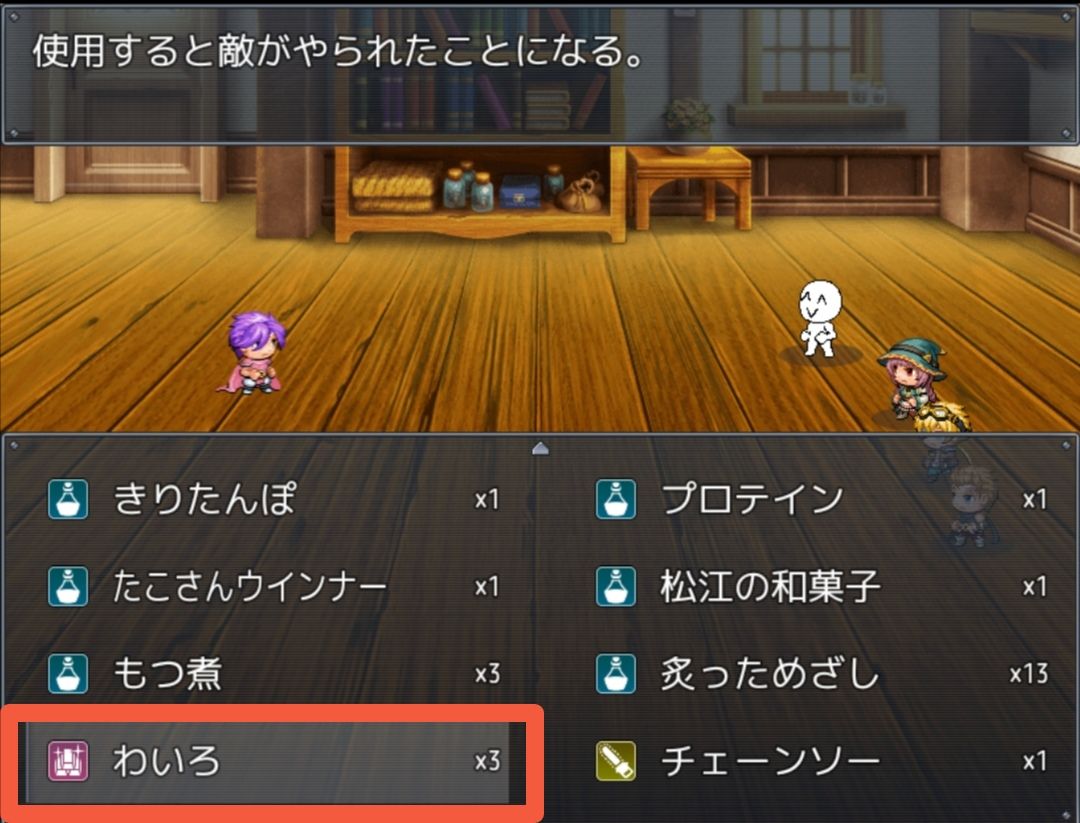 之后回到帕里皮集市就发现那个“临时休业”的摊子开业了,可以给小林买武器:不错的牛蒡、带属性的牛蒡和名字很长的非常nb的牛蒡等等