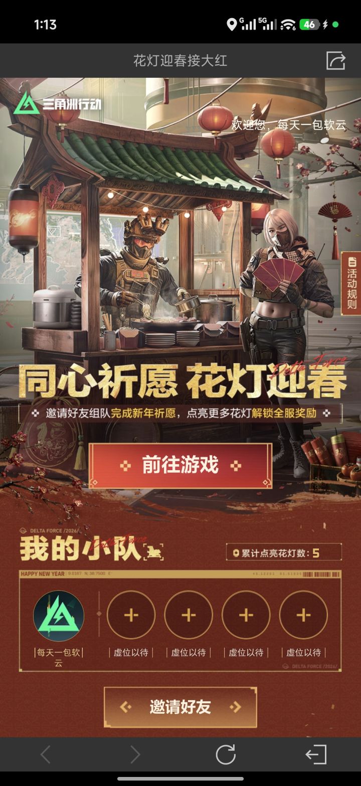 三角洲新春祈愿限时启动,快来与我组队赢烟花与拼手气红包吧!我的小队ID:【F1000708509_1】,点击链接与我组队,邀请链接: