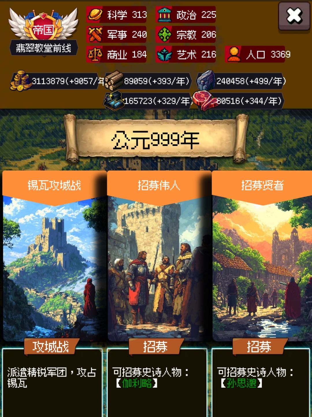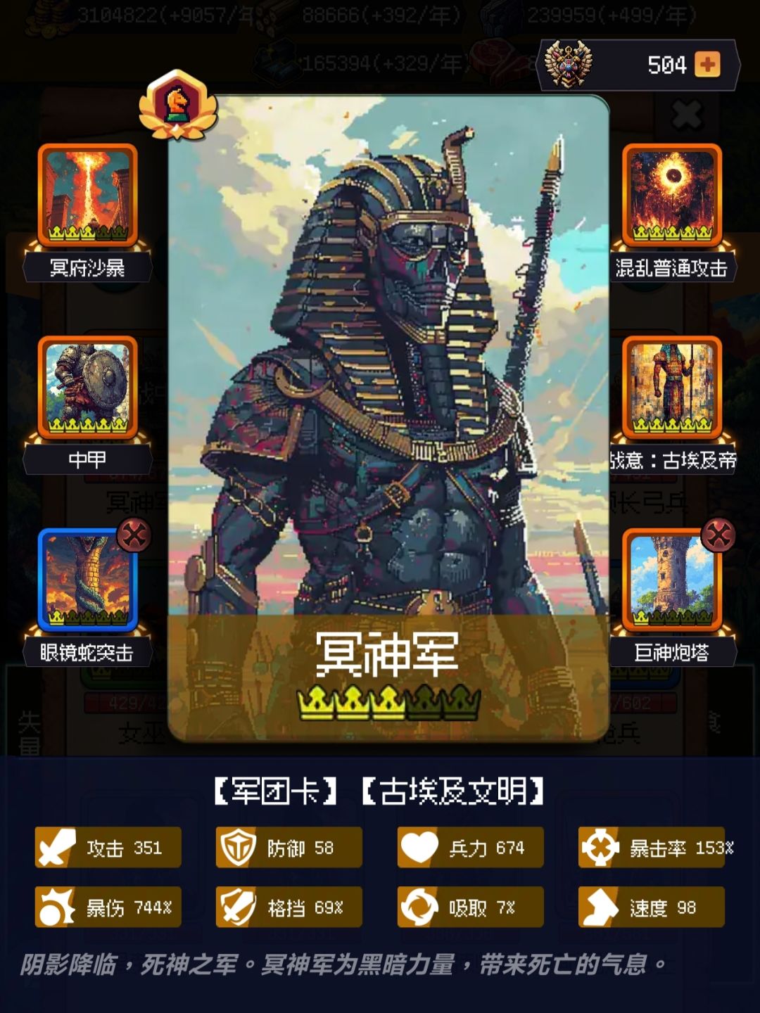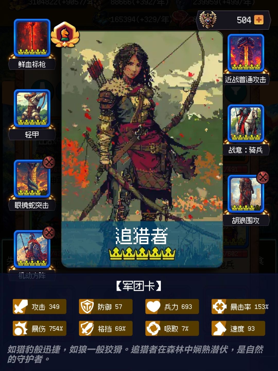 只有骑兵队伍能稳定破格挡,氪一个斯巴达城邦,需要点些史书,叠格挡和暴击伤害,撑到400回合左右,后面就无限循环了