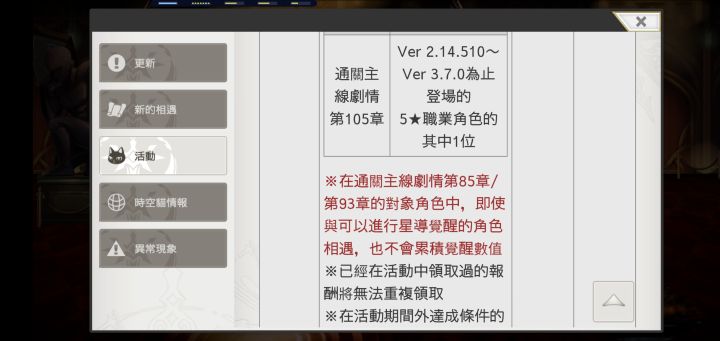 3.现在有活动通关主线会给人物,我也不知道强度如何,值不值得先推主线其他都放着,而且现在人物强度不够,主线全靠新人物薇尔丹塔,基本上算逃课,四星书和五星书也刷不出来,经验都浪费了。