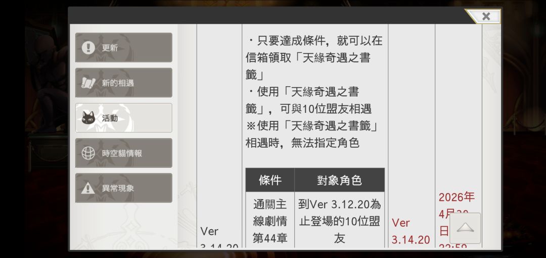 1.国际服目前哪些联动 ,外传,协助,断章等等是限时?