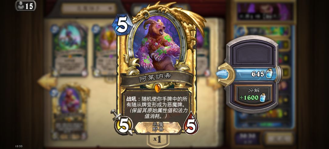 即便是挟持射线减费的阿莱熊,也怕把原手牌有用的怪变废了。