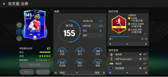 2、尽管天赋加成了加速数据,但法蒂步幅小,边路冲击力一般#fc足球世界