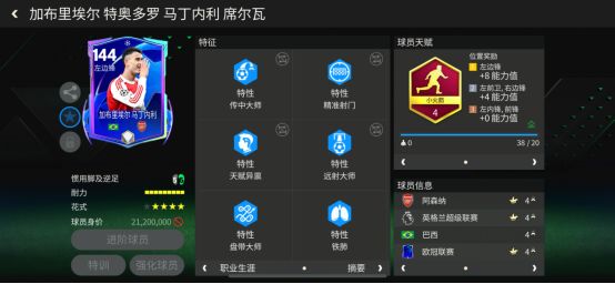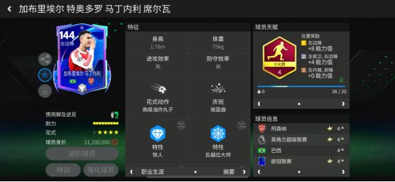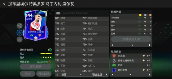球员天赋:小火箭(冲刺速度、远射、传中、盘带、控球)
