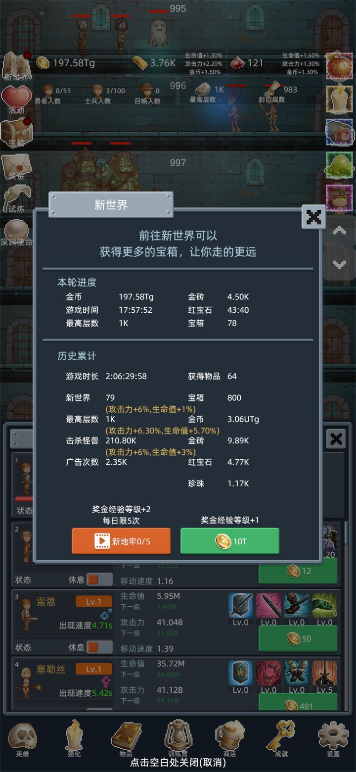 2)士兵每提升到1000都能有质的飞跃,同步会带动勇者的伤害;