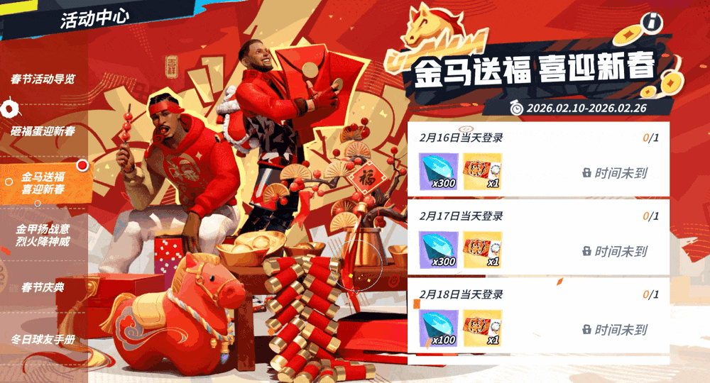 [金马送福,喜迎新春]活动持续进行中,2月16日至2月26日期间,每天上线都有钻石、联动球星券拿,助你更快将心仪球员杨瀚森收入囊中。