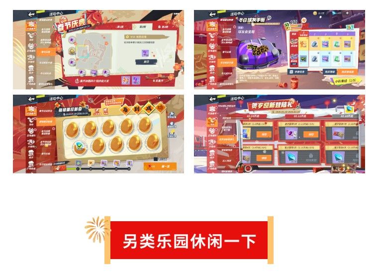 大家也别忘记正在进行中的春节福利活动呀![春节庆典]集拼图拿培养材料、[砸福蛋迎新春]随机获得道具奖励、小队集结打打球,拿满[冬日球友手册]的所有奖励,还有一周只登录两天就能拿紫券、潮人券、钻石等好礼的[贺岁迎新登陆礼]......让你新年上场就赢在起跑线!