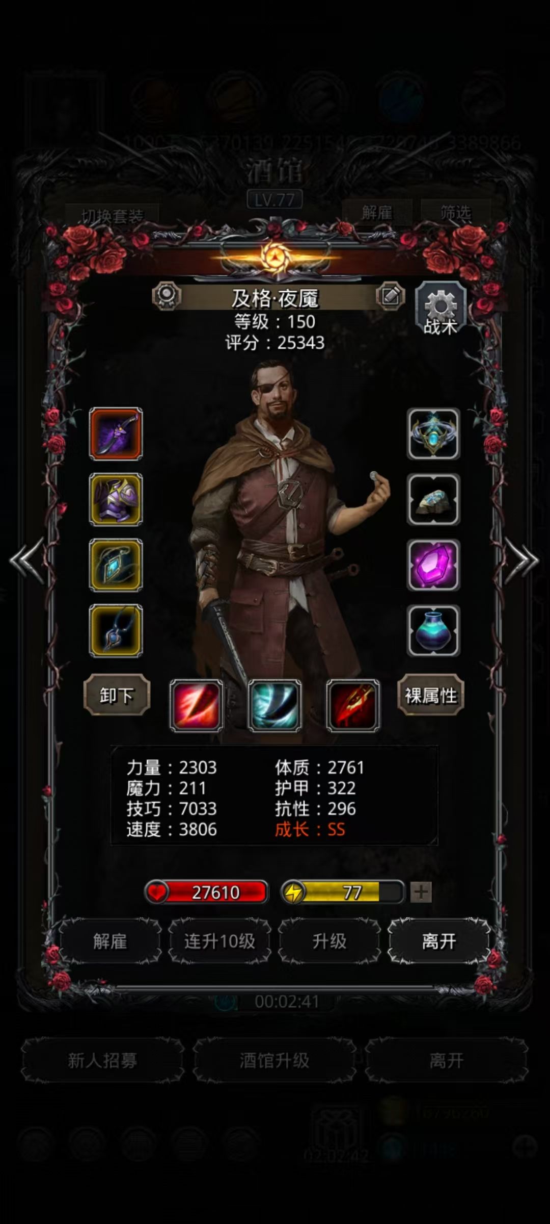 圣殿带10异常水环,15命中魔石,保证100%眩晕,boss 手动晕左,夜魇待命,第二发晕差1秒夜魇开自动,然后手动晕最右边,这套配置1分46秒打完,非常稳。