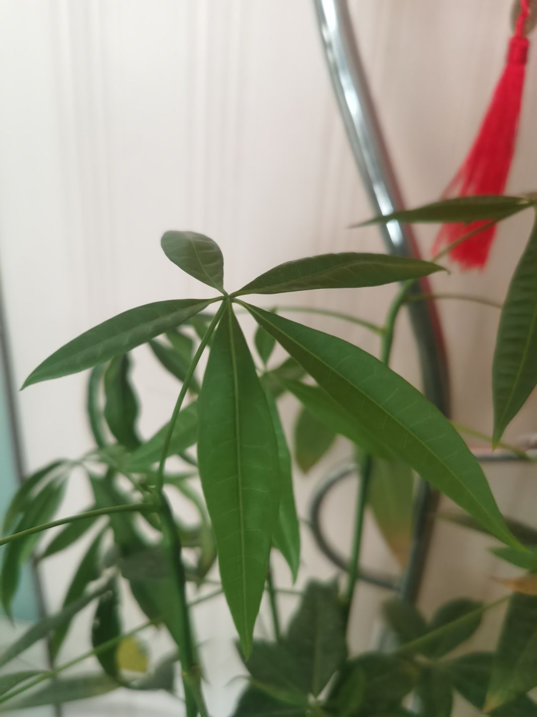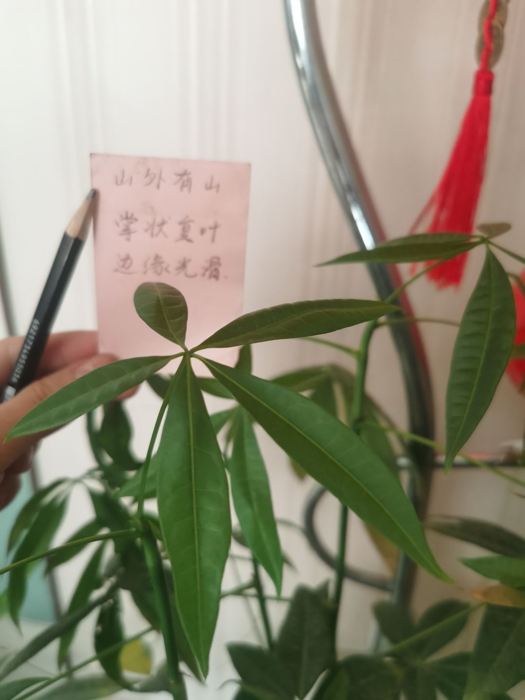 叶:掌状复叶,小叶5-9片,图为五片,叶片细长,边缘光滑。