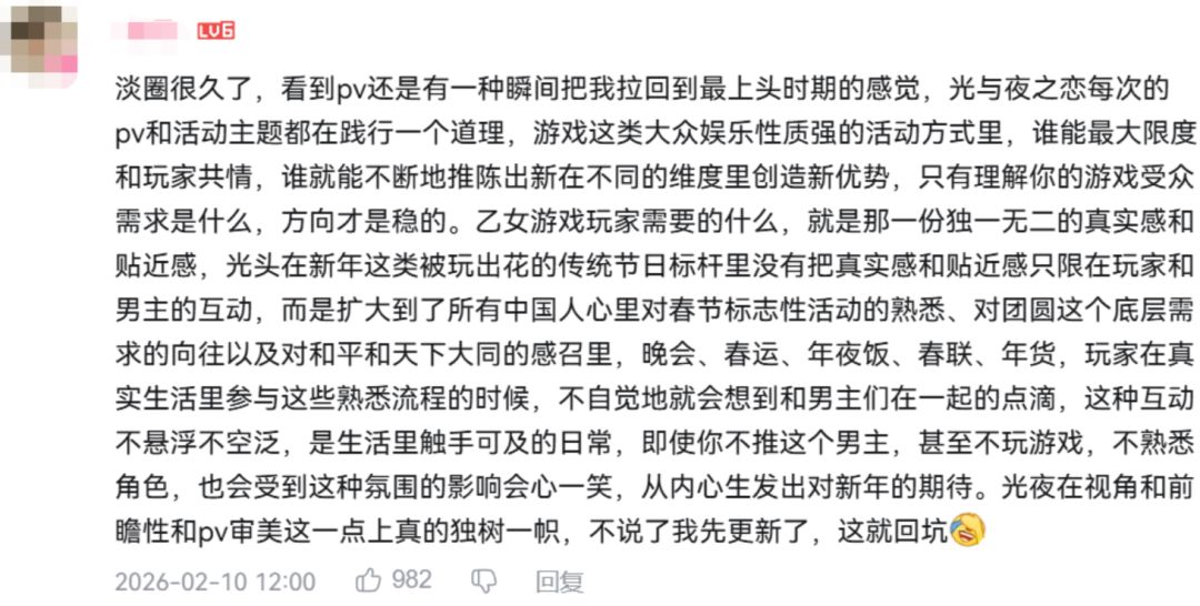 像今年,就有玩家评论,说自己在《光与夜之恋(下称光夜)》新春活动「新活动,马上好」中找到了年味儿。