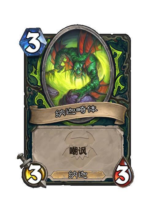 恶魔猎手普通法术,1费,邪能法术,在你的下个回合开始时,召唤一个3/3并具有嘲讽的纳迦。