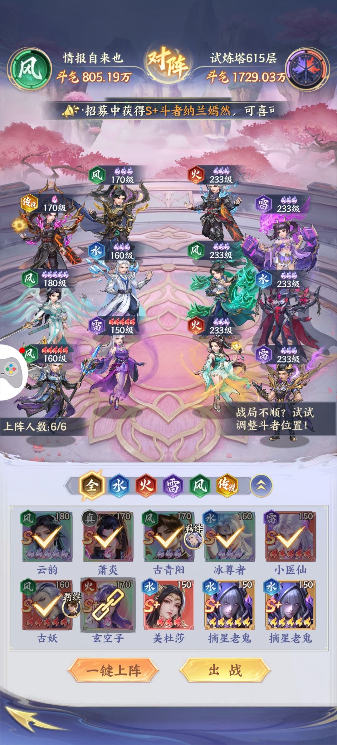 思路就是利用冰尊者白3的稳定减怒让PVP PVE的对手罚站,搭配小医仙+萧薰儿回怒可连续罚站3回合!青麟用来拖无敌拖回合。氪佬可补一个传说药老增加罚站概率。