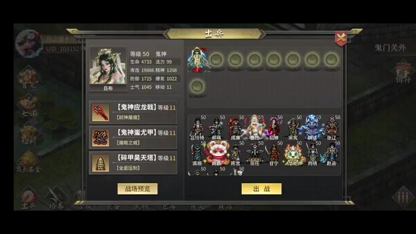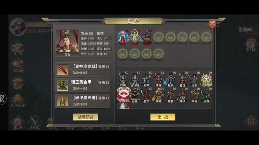 因为新挑战关会增加血量,肉盾不要去点加血的符文和学加血技能,臧霸也不要去升级兵种(生命成长变高会增加血量?),第四关需要他抗,固守搭配蚩尤没什么作用,真神农或少昊才能撑住,吕布主力,防御果留部分第六关可能用的上。