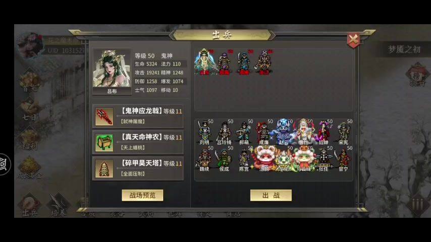基本成就送的神器(两个神农鼎(v群和成就)、蚩尤、应龙、昆仑、盘古),神器箱子4个(血麒麟、昊天塔、两个神农鼎),吕布技能都是成就拿的,没有氪金技能,有真神玉果子数量够的都能打得过,就是第五关刮了几个小时,参考只签到大佬貂蝉用三阶孟德剑的无距反击效率高一点,还是建议多几个神器给吕布升级下装备好点。