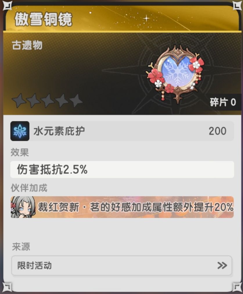 解析:除了好感属性是会心率和伤害加成外,没有其他优点,不推荐抽取。