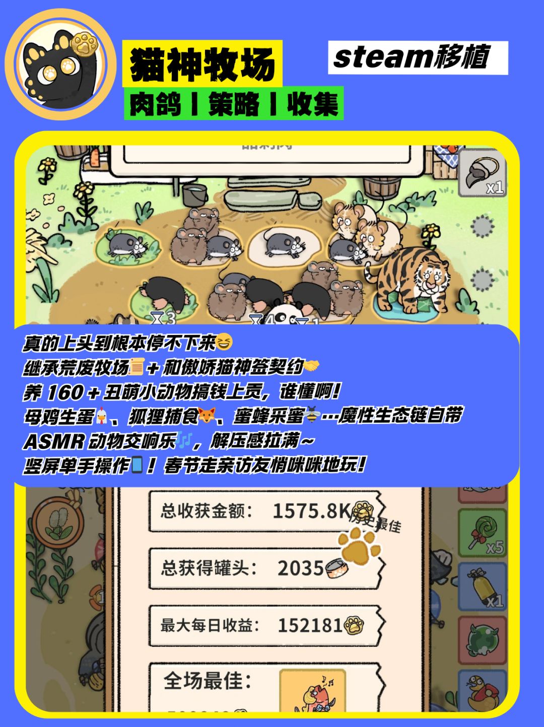 萌系牧场 + 卡牌养成,全是可爱小动物,治愈力直接拉满✨