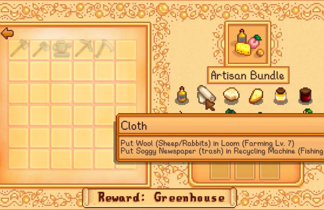 实用mod,鼠标悬停社区中心献祭物品时会提示物品获取地点。