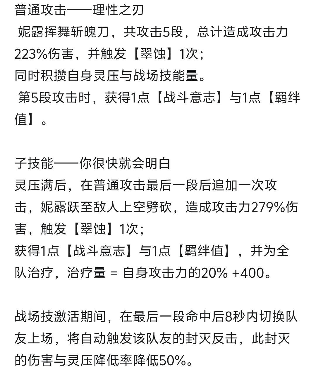妮露详情 羁绊 刻印 命坐 被动 技能