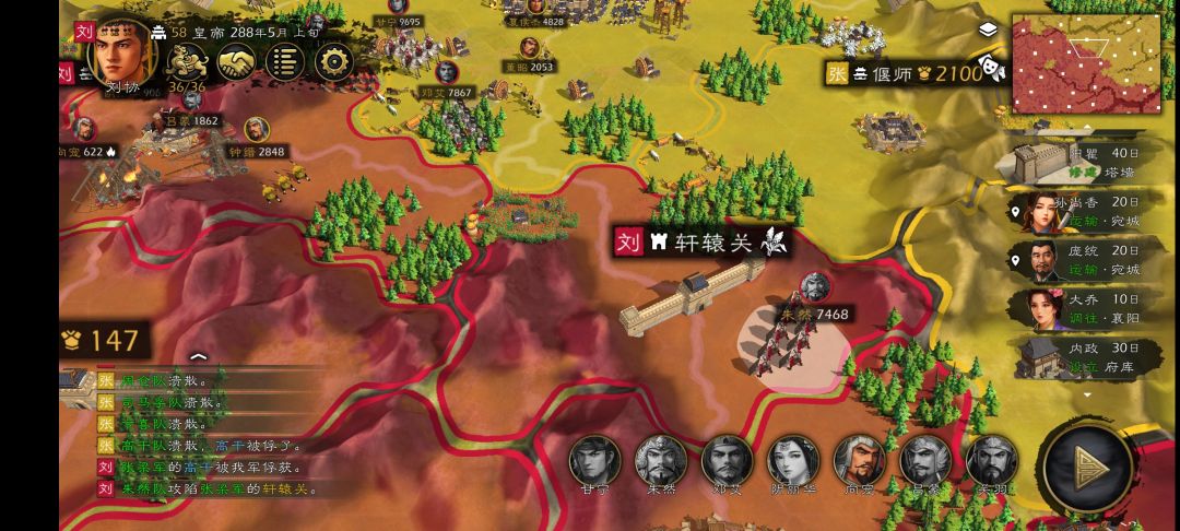 〔朱然〕将军攻克了〔轩辕关〕前去驰援为正在抵抗数倍之敌的关将军他们。