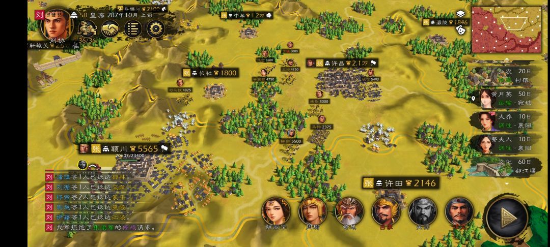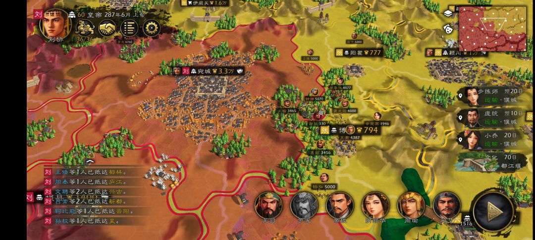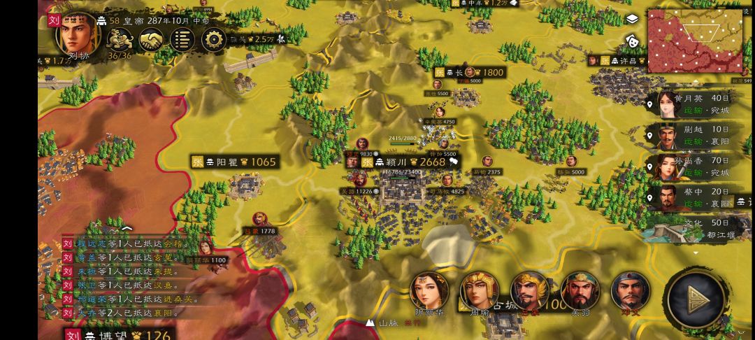 颖川战报,原来在〔朱然〕将军前去支援的时候,导致守军只有1.2万左右,〔许昌〕乱军方面派遣了4万大军,攻取〔颖川〕,〔颖川〕太守周瑜与副将陆逊率所剩兵马坚守了数日,战至兵力不足3000,就当城破之时,〔宛城〕2万援军最终赶到,成功解了〔颖川之围〕。