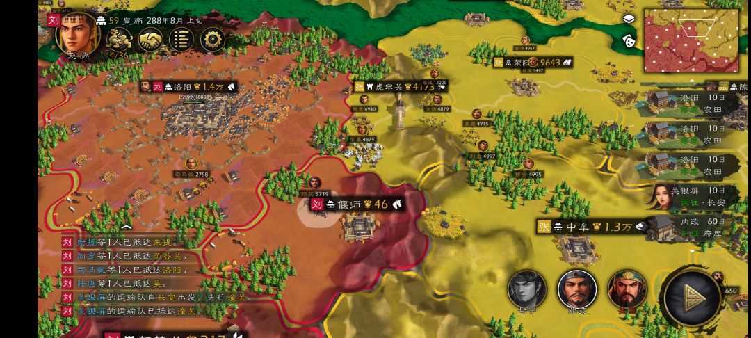 现在兵马还不能停下来,必须立即去拿下〔虎牢关〕因为中原乱军集结了约有五至6万军队准备夺回洛阳,所以必须要夺取这个关口,才能将敌阻挡在外,这就导致了洛阳守军不过万,不过好在宛城方面派遣了预备队驻扎在了〔渑池〕也有1万左右,可以解燃眉之急,随后命襄阳太守司马微前来洛阳担任太守,要借助他的名望来征兵。