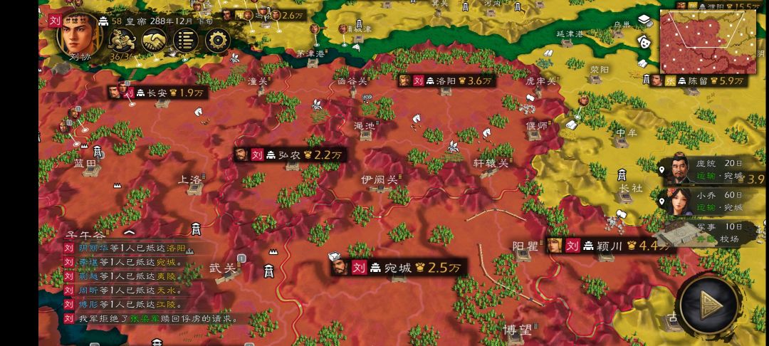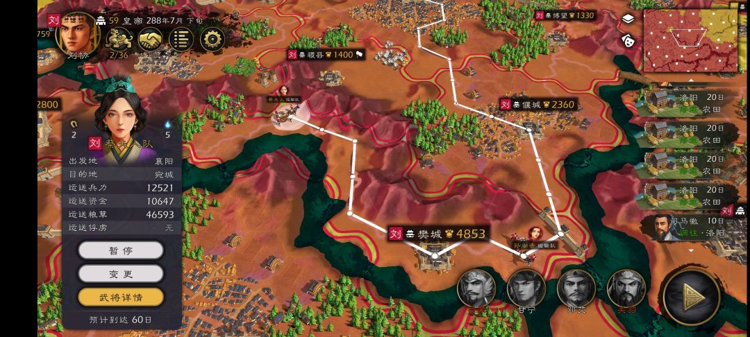 原先拿下〔弘农〕之后直攻洛阳的计划修改,先攻取〔颖川〕,再攻取〔洛阳〕要确保后方的资源运输安全。
