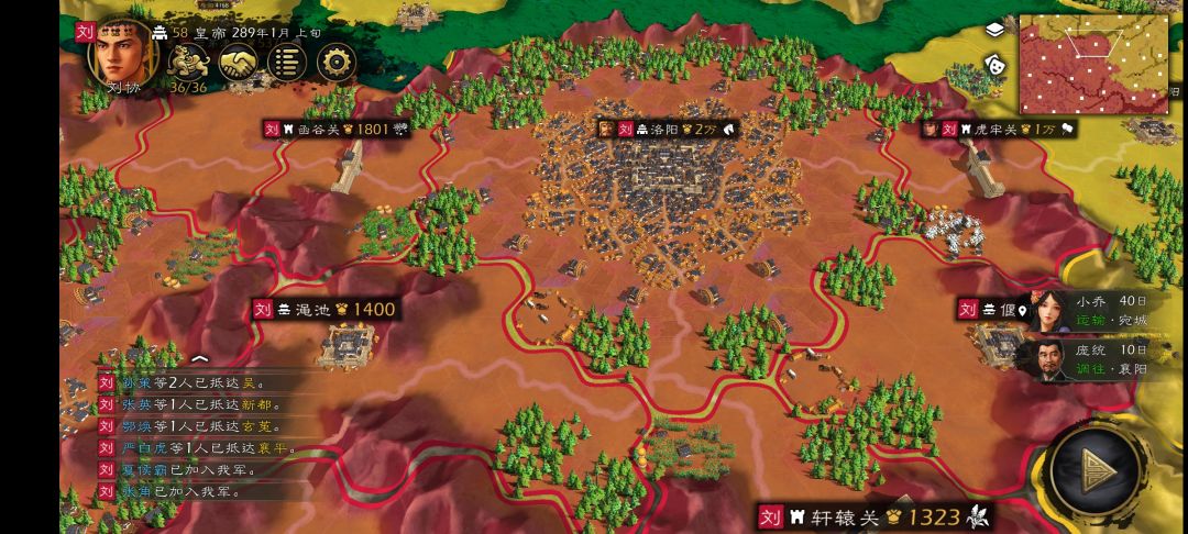 可惜还是没有夺下来,只能与乱军展开一场正面交锋,乱军攻入了〔洛阳〕境内,但在付出一定代价后,成功了拿下〔虎牢关〕随后开始清理散军最后全面占领洛阳。
