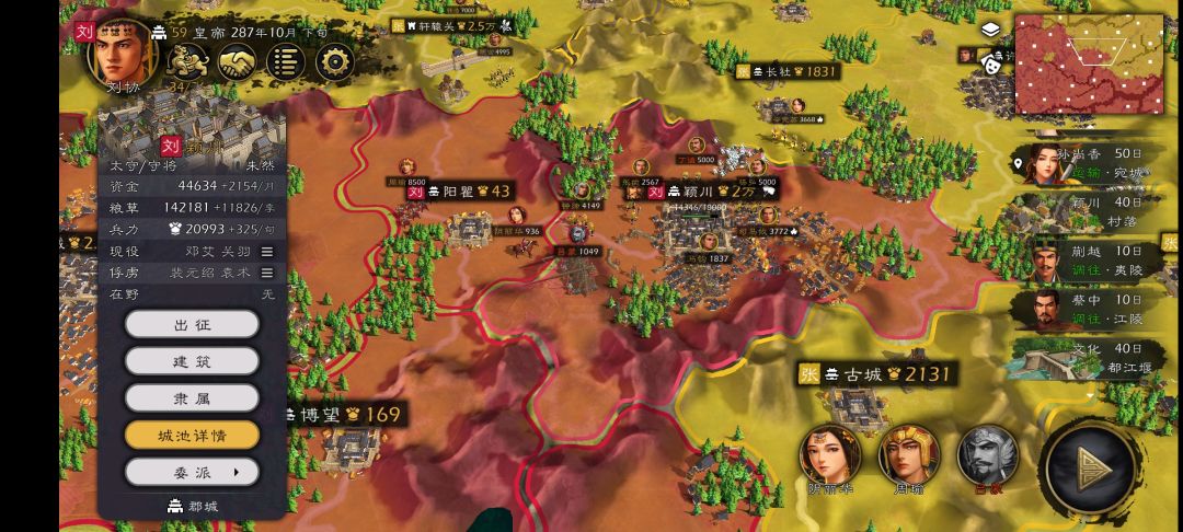 〔颖川〕光复!!!随后后续兵马驰援驻扎,派遣〔朱然〕将军前去镇守,使敌不敢来犯。