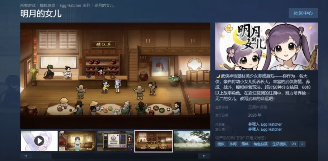 依托前作的口碑与玩家基础,养蛋人工作室于2025年6月23日正式官宣《明月的女儿》,同步上线Steam商店页并发布首支预告,迅速吸引大量玩家加入愿望单。