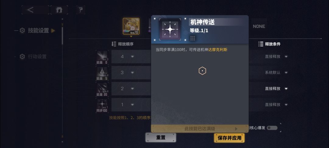 ①将拥有核心特殊[机神传送]角色传送的「机神」作为独立角色,玩家可以像对普通作战角色进行设置一样,对「机神」进行技能设置。