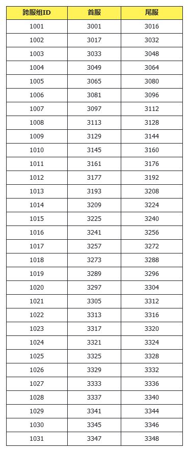 8. 本期跨服比拼分组如下:(其余服务器均为本服比拼)