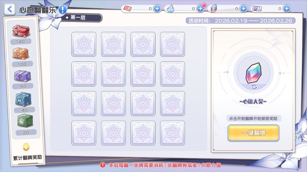 2. 进行翻牌时,优先消耗愿力值,愿力值不足时再消耗翻牌券;
