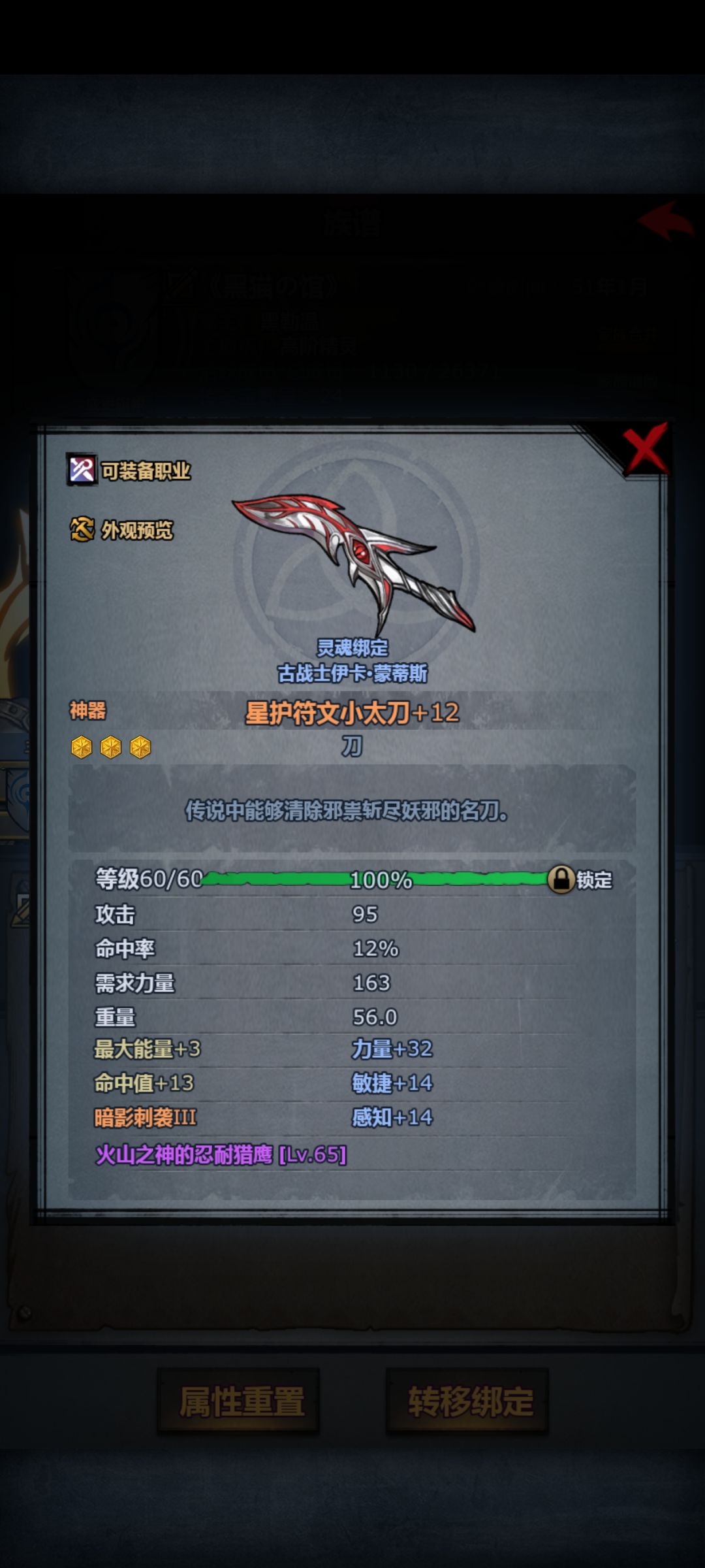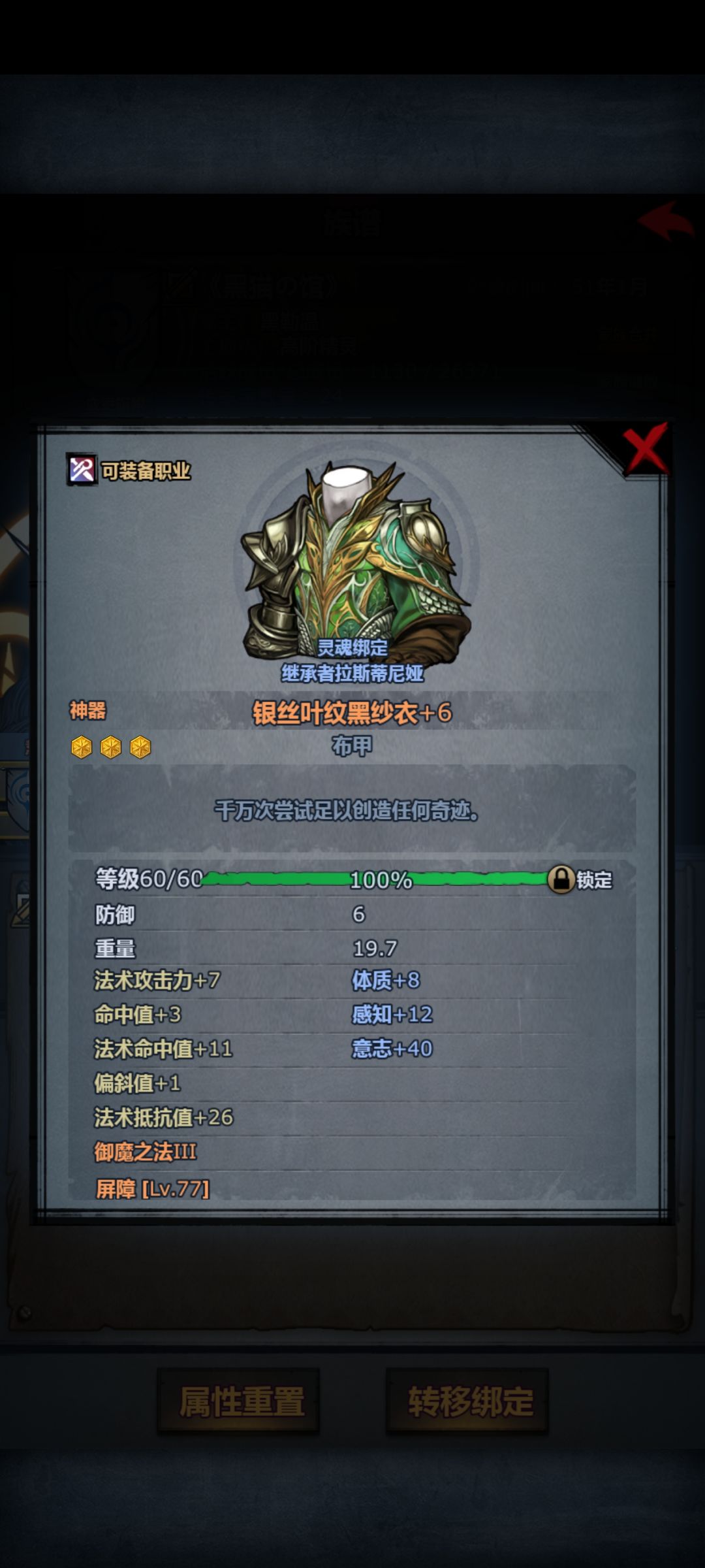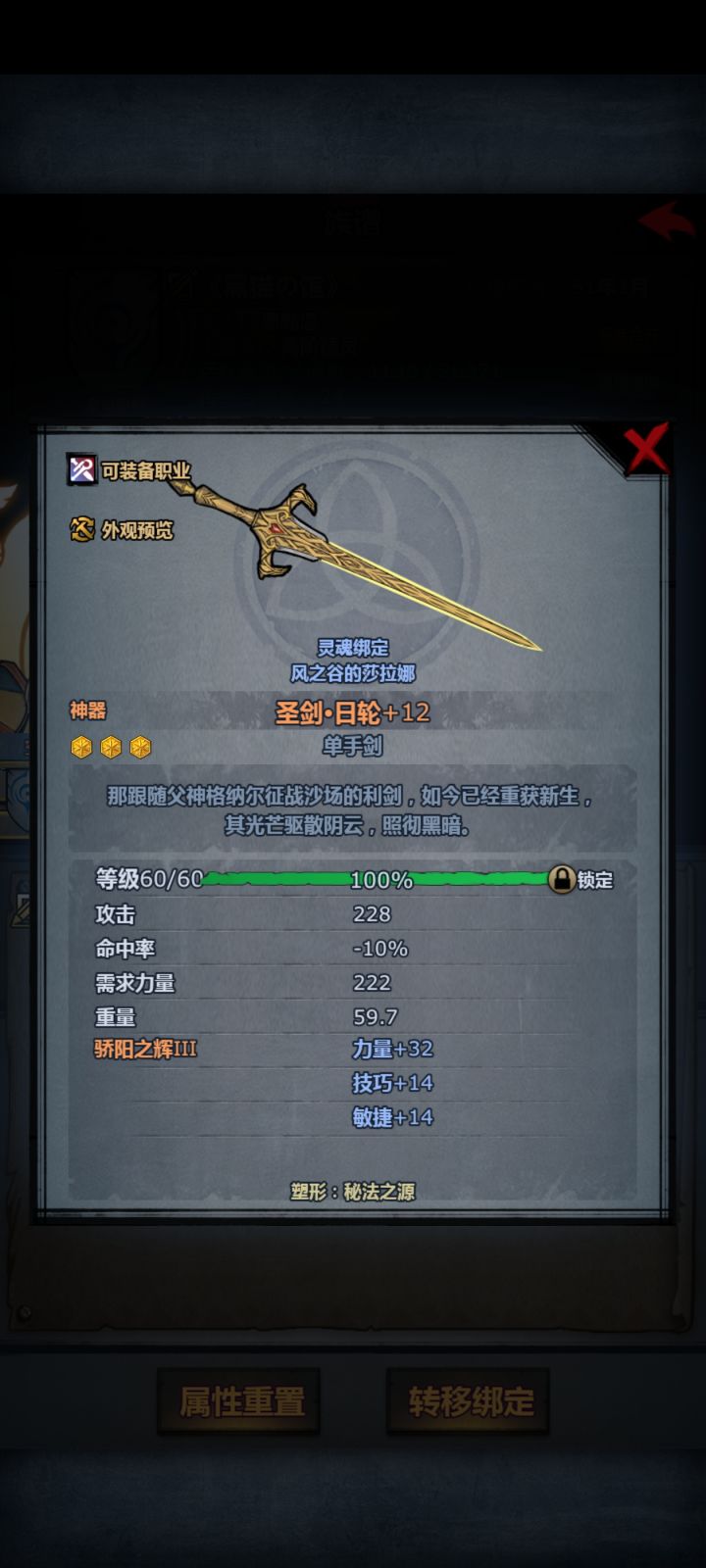传家宝:16件60级(日轮,断绝,切瓦骑枪,黑精刀,精灵短弓,法拉短弓,塞宁链甲,刀客布甲,47感布甲,40感琴,海甲,火甲,狂战斧头,狂战皮甲,40意晨光,40意权杖),