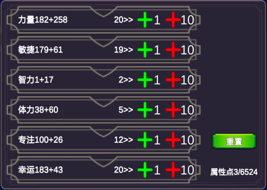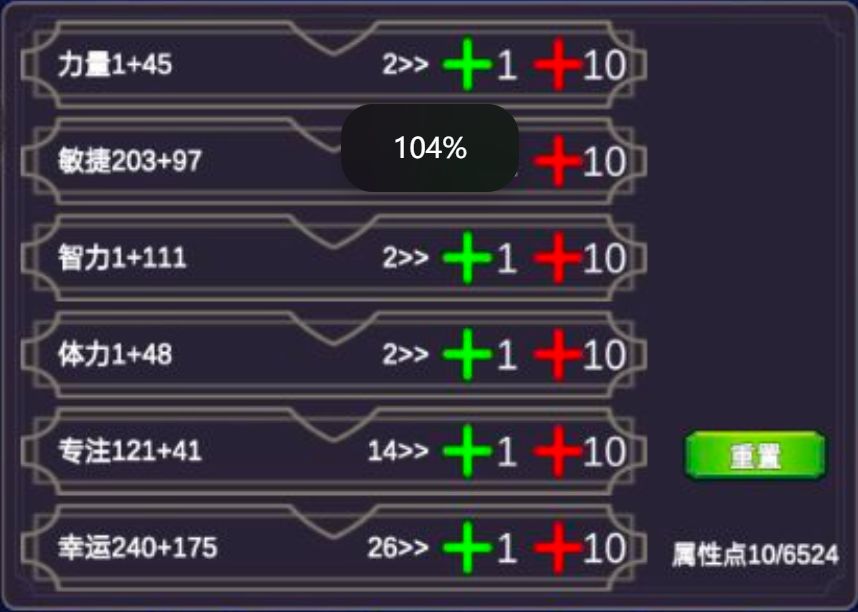 加点:带大黄剑时敏捷凑20的倍数,幸运根据自己的暴击的小数点凑整。