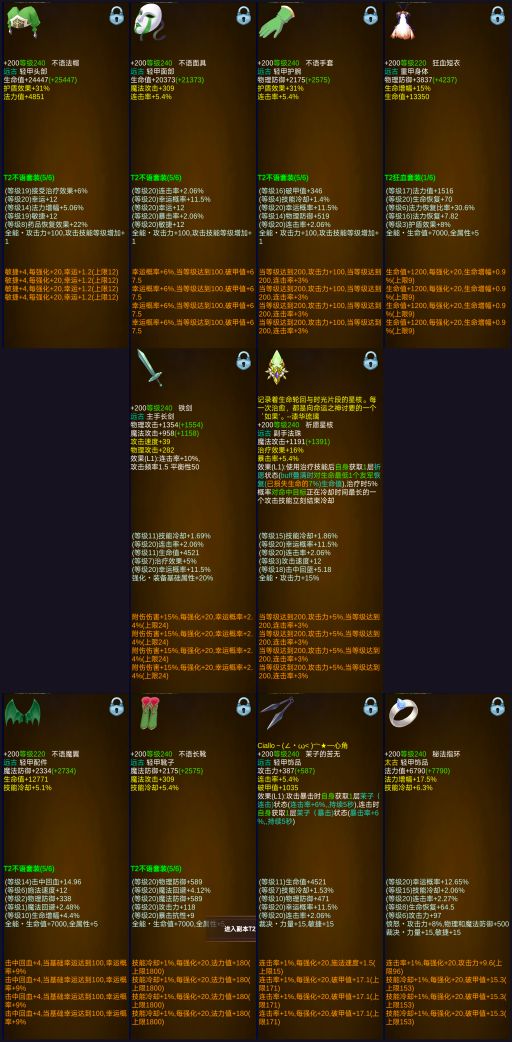 体系内刷新牧装备及附魔:4不语拿冷却,不要所有人都6不语。衣配鞋远古词条选全能多一些幸运,首饰暴君/裁决拿敏捷配合剑多一些连击。