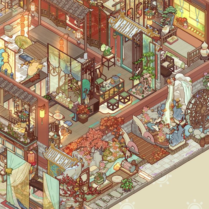 娇子入户,左边厨房,右边神龛仪式台(抚琴台)和阁楼,最右侧是花园~