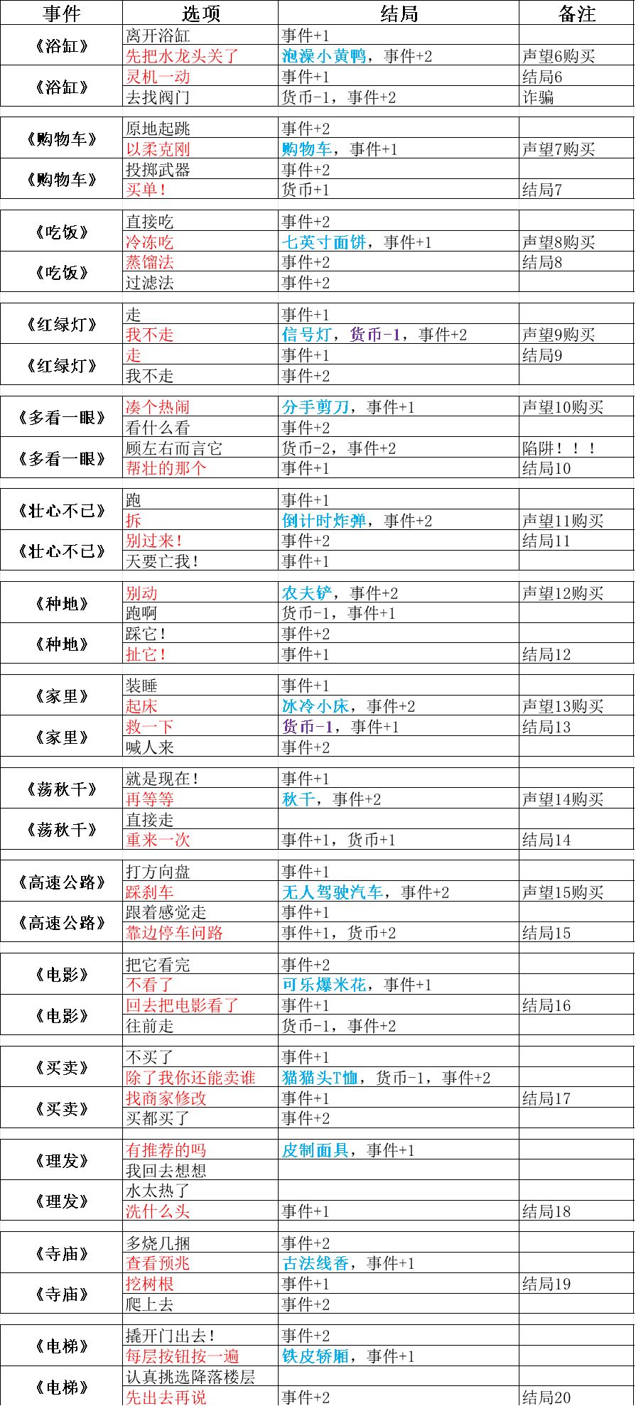 事件线(精简版) 图里的是事件分多的选项