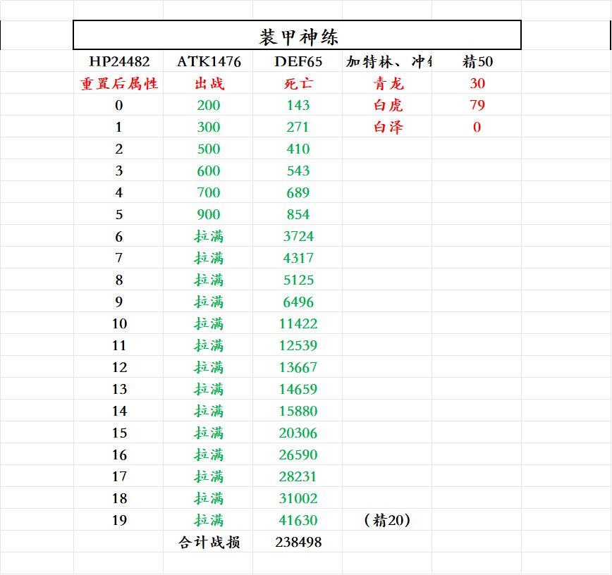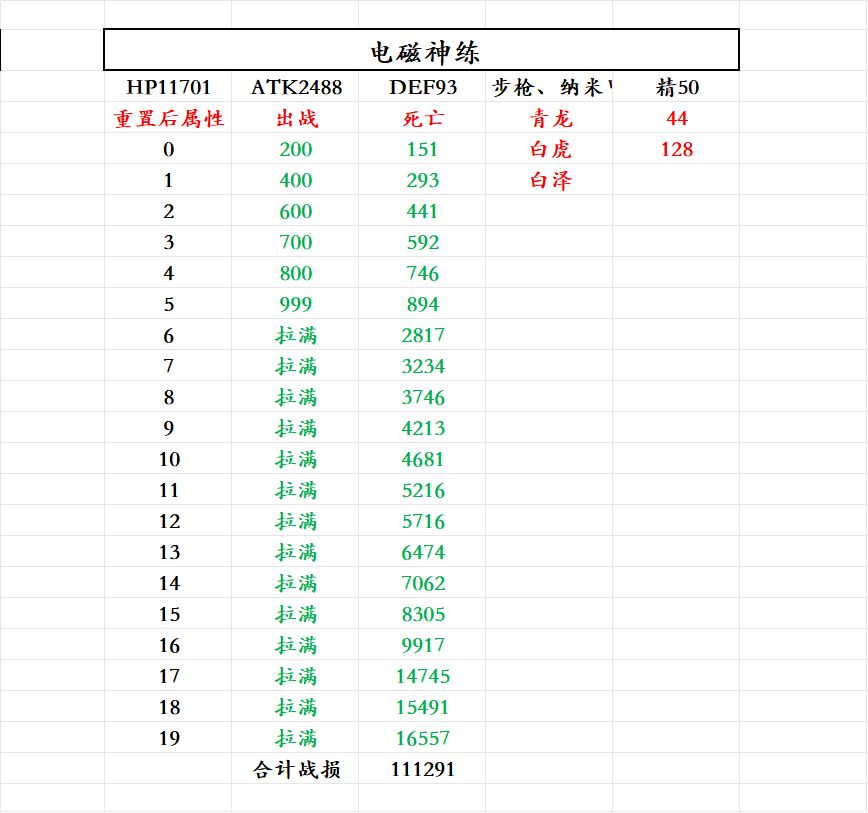 二半夜睡不着,总算把步兵觉醒完了。目前进度离2048差1万规模,陆续更新一下兵种神练战损,注意属性为重置后的!!!