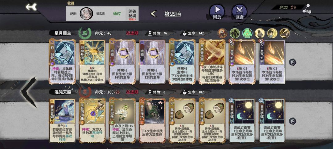 大家好,新赛季的渊谷秘境还是很有意思,也满足了我在碎片时间里游玩弈仙牌的心愿,春节期间陆陆续续全通了角色的难度15秘境,感觉通关最舒服无脑的还是锻玄宗,这里将自己通关的一些经验心得和大家交流一下。