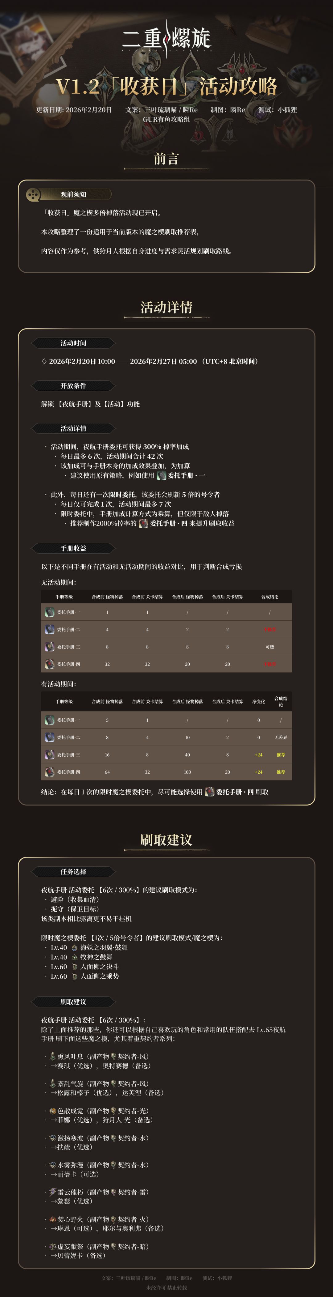 大家好,今天为大家带来1.2版本的「收获日」魔之楔多倍掉落活动的详细介绍,委托手册使用建议,以及魔之楔刷取推荐