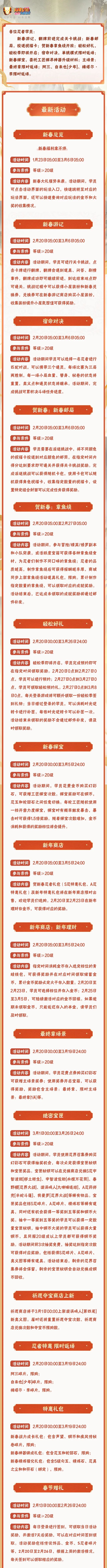 2月19日《火影忍者手游》更新:贺新春活动持续 轻松季即将开启