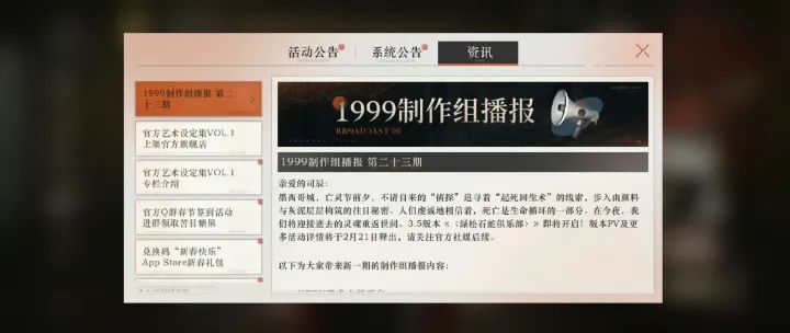 2月19日,《重返未来1999》官方发布第二十三期制作组播报,正式揭晓3.5版本「绿松石蛇俱乐部」核心内容,同步披露玩法优化、福利回馈与后续版本排期调整计划,为司辰带来全新剧情体验与版本规划。