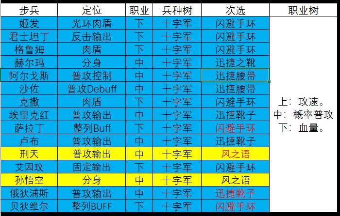 各英杰兵种职业装备推荐